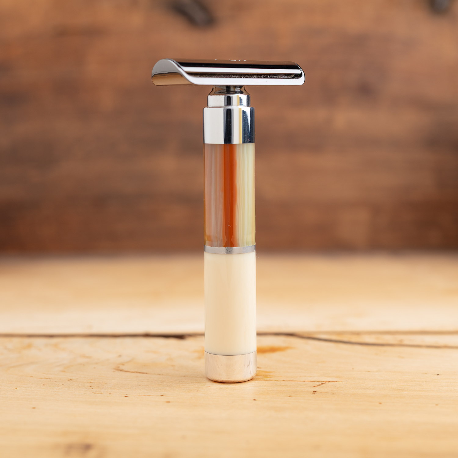 Rasoir artisanal MRed manche en résine beige et en resine »Jade »